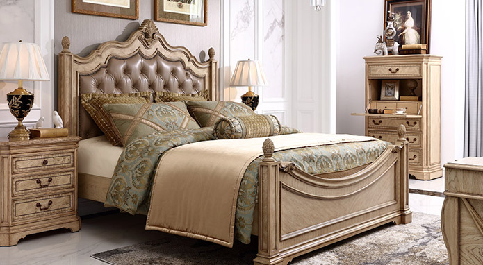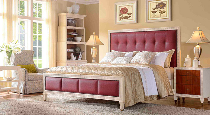 以巴黎的唯美愛(ài)情故事為背景,使用旋渦狀床板設(shè)計(jì),加上高檔的水曲柳樹(shù)瘤和白橡木皮,再用優(yōu)雅白配色與帶仿古效果的色澤痕跡點(diǎn)綴,并飾以低調(diào)舒適的進(jìn)口牛皮面料,充分彰顯了古典奢華與現(xiàn)代美學(xué)的結(jié)合,精彩演繹了法國(guó)人對(duì)奢華絢麗的寵愛(ài)。